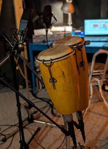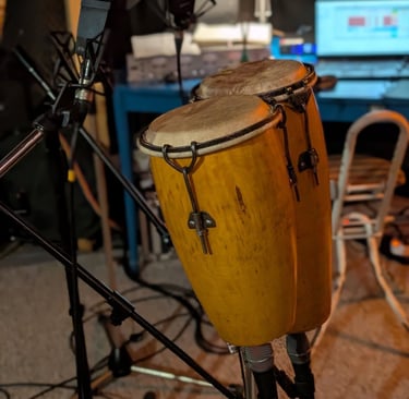 Poszukiwania ustawień mikrofonów do każdego instrumentu - jest robota- tu zabawa z bongosami